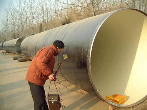 環氧煤瀝青防腐螺旋鋼管就是我們常說的幾布幾油,常見的有一布兩油,三布兩油,五步三油,七布四油。環氧煤瀝青防腐螺旋鋼管組份為環氧煤瀝青底漆和面漆,都是以環氧樹脂和煤瀝青為主要成膜物,添加各種防銹顏料、絕緣性填料、增韌劑、流平劑、稀釋劑、防沉劑等制成。外觀:底漆甲組分鐵紅色,乙組分黑色,面漆均為黑色。具有優異的耐化學介質腐蝕性和良好的物理機械性能,粘結力好,涂膜堅韌,并有優異的電絕緣性和抗滲透性,抗雜散電流和抗微生物侵蝕性,成膜后,可減少施工道數。主要的執行標準SY/T 0447-96《埋地鋼質管道環氧煤瀝青防腐層技術標準》和SY/T 0457-2000《鋼質管道液體環氧涂料內防腐層技術標準》。主要用于埋地或水下鋼質輸油、輸氣、供水、供熱管道的外壁防腐,也適用于各類鋼結構、碼頭、船舶、水閘、煤氣儲罐、煉油化工廠設備防腐及混凝土管、污水池、樓頂防水層、衛生間、地下室等混凝土結構的防水和防滲漏。